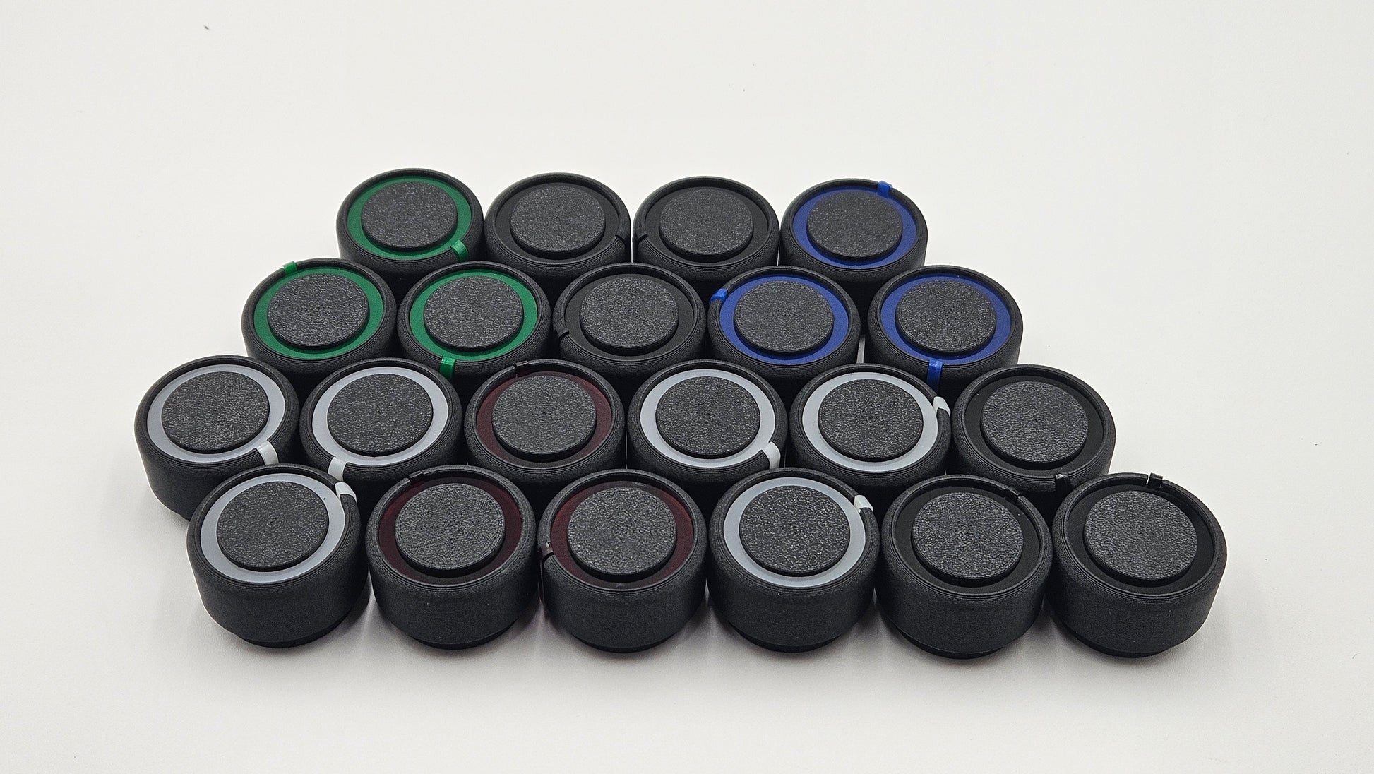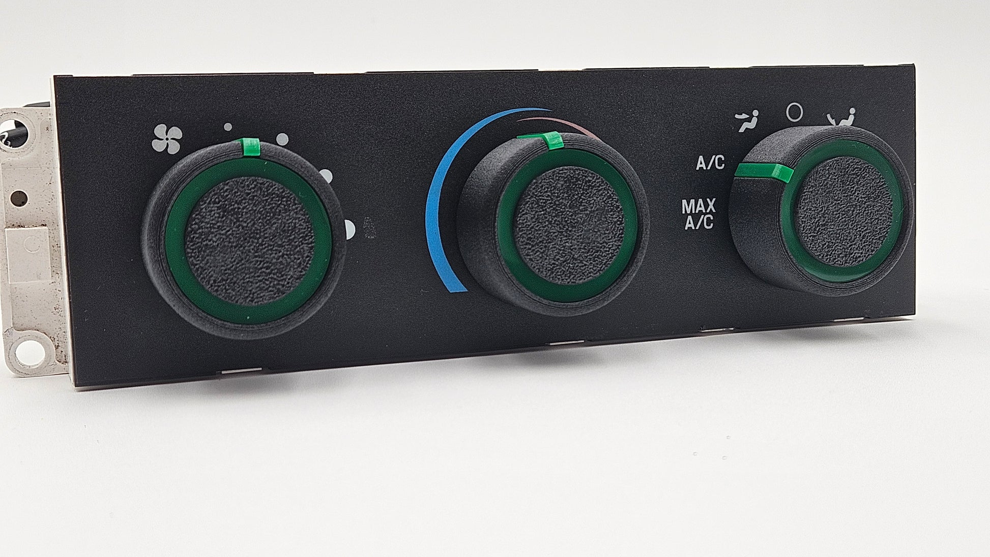 Modernize your ride with these updated HVAC knobs in your choice of color. This 3D printed, 5 piece design uses a carbon fiber filled PETG filament which is resistant to UV light and the high temperatures your car interior experiences in the summer. Choose from 4 vibrant, glossy colors of a laser-cut acrylic to match your car.